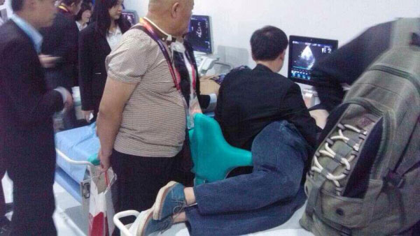 圖三:展會中,客戶在體驗(yàn)telacare泰樂康產(chǎn)品